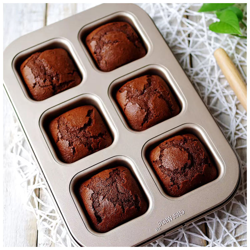 Chefmade WK9150 6 tasses 11 pouces carré Muffin gâteau en acier au carbone plateau de cuisson pour produits de boulangerie et garde-manger