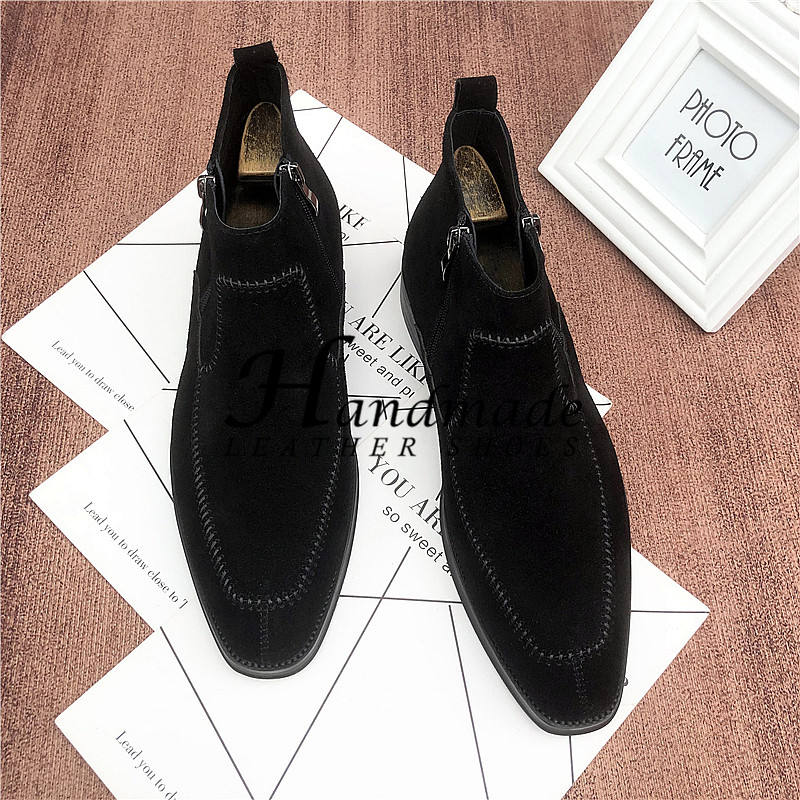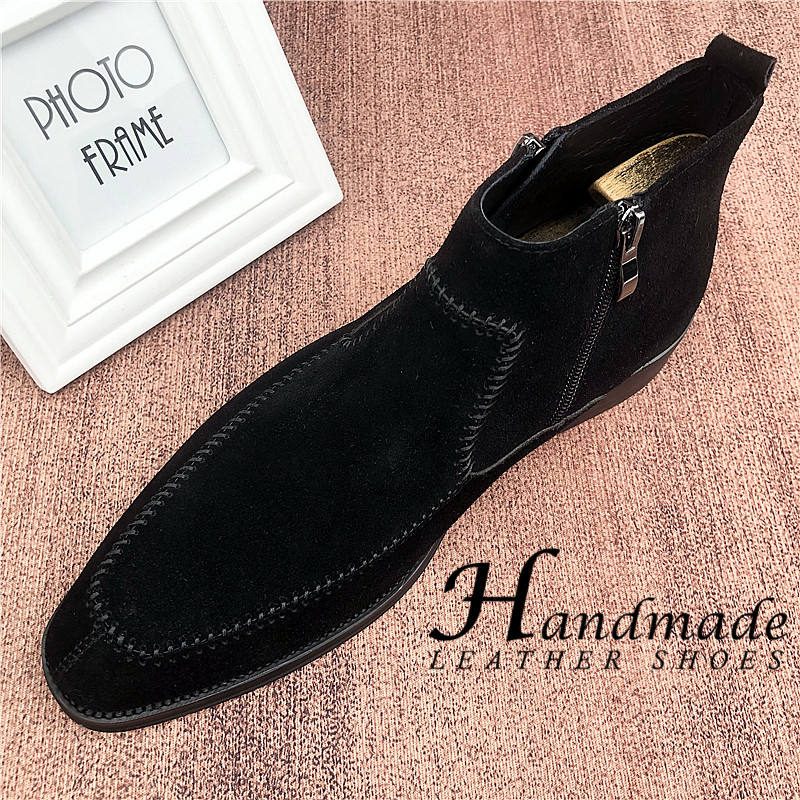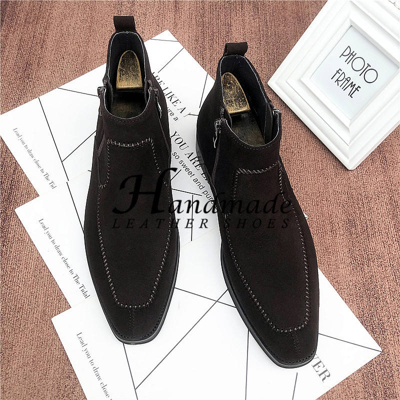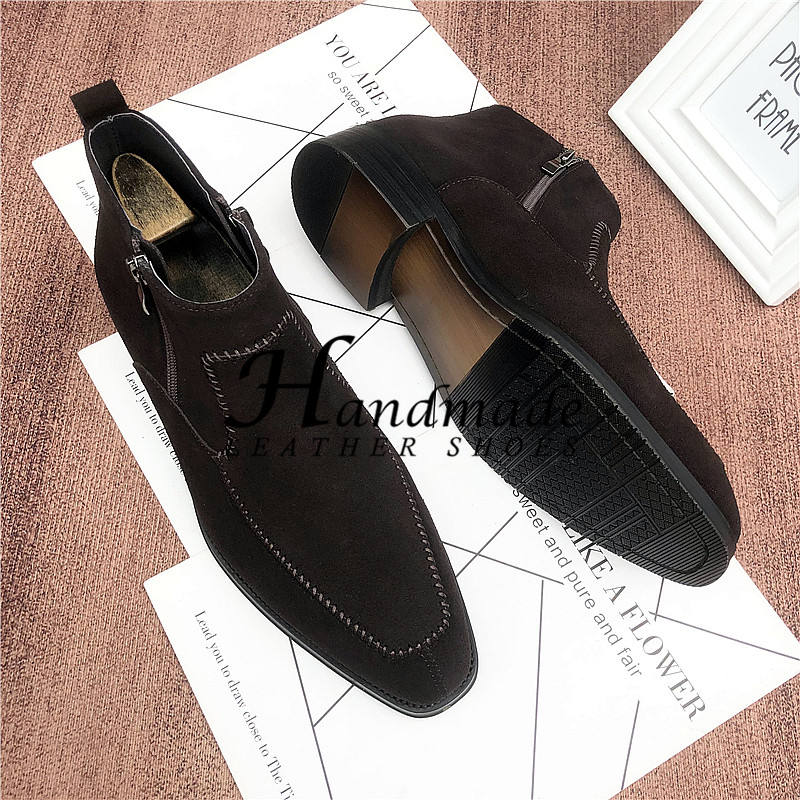 Bottes Chelsea montantes en cuir véritable à bout pointu pour homme – Style décontracté rétro à enfiler