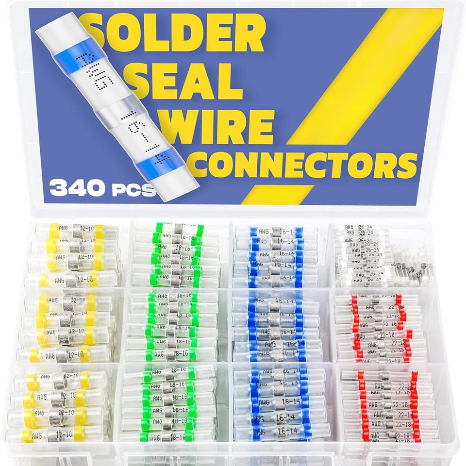Connecteurs de fils pour ingénierie chimique, 340 pièces, connecteurs circulaires scellés à la soudure AWG 12-24 pour câblage électrique