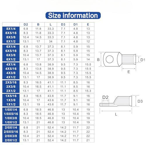 Connecteurs de batterie pour l'ingénierie chimique 1/0 AWG 3/8 po, bornes à sertir avec gaine thermorétractable