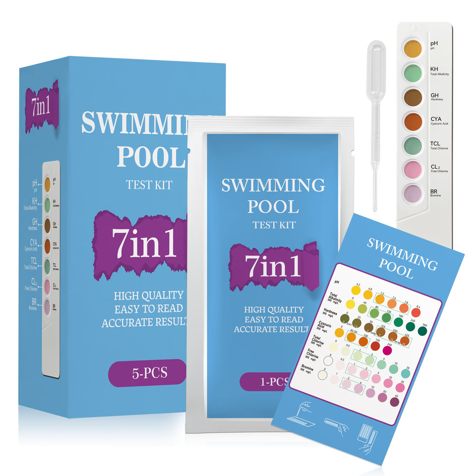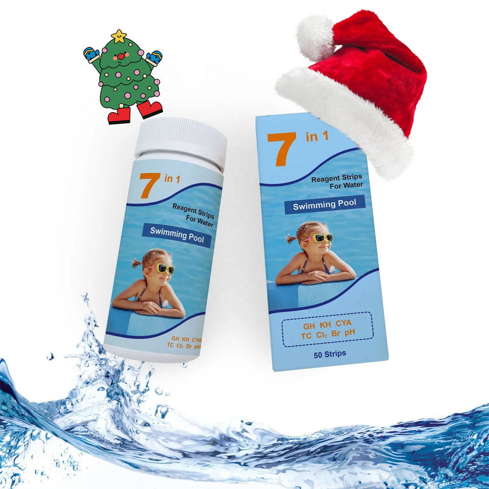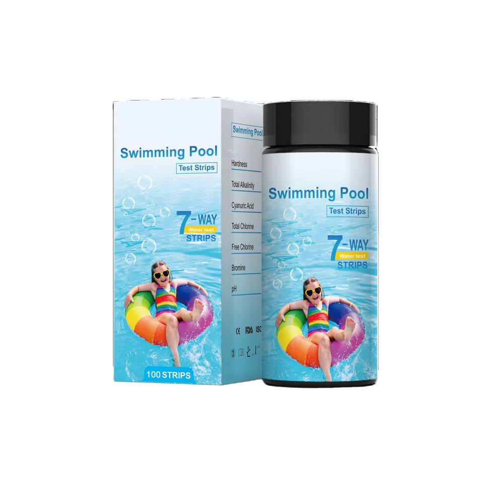 Kit de bandelettes de test chimique pour la piscine, chlore, dureté, brome, alcalinité, acide cyanurique, pH, bandelettes de test de l'eau de piscine 7 voies