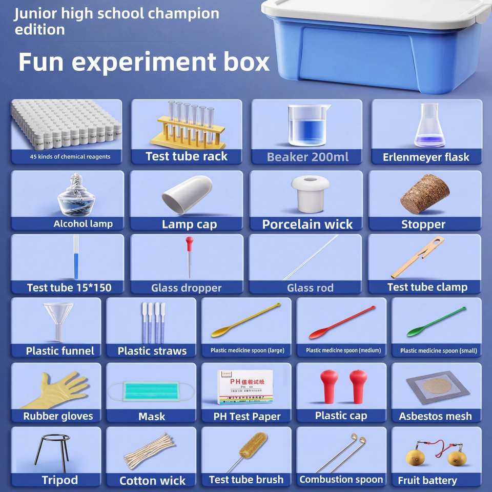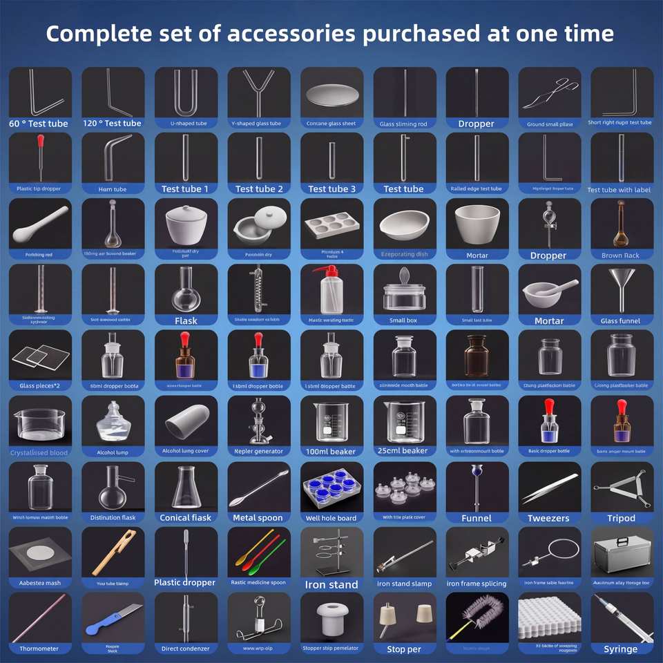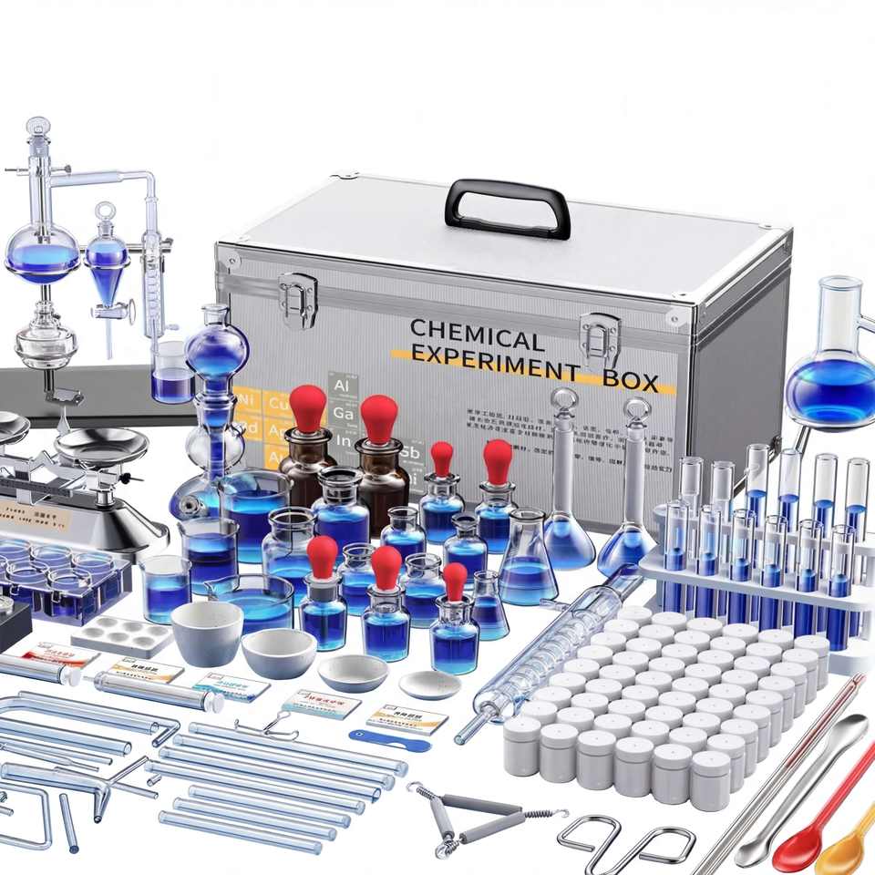 Matériel de laboratoire de chimie, ensemble complet, kit de chimie pour collèges et lycées, boîte d'expériences avec réactifs, support en fer, dispositif de distillation