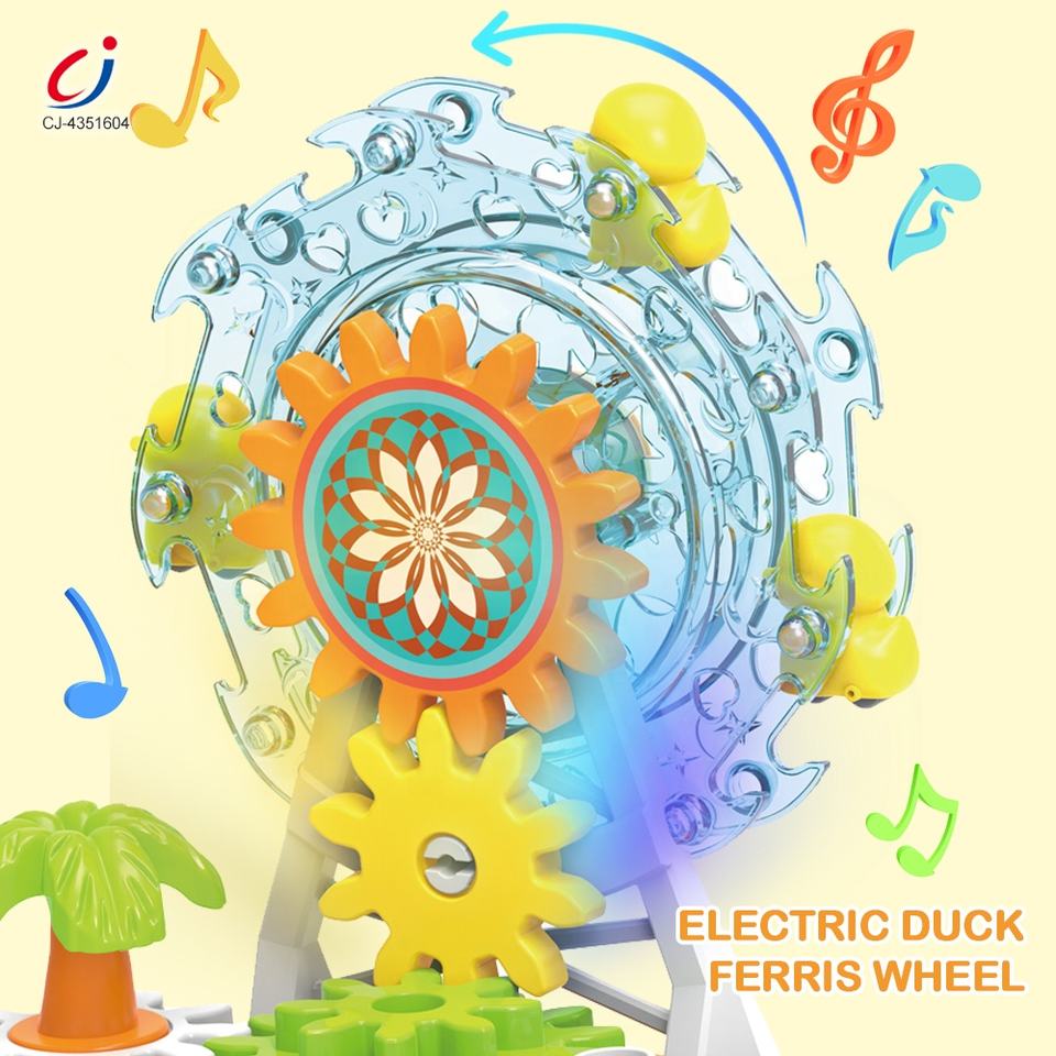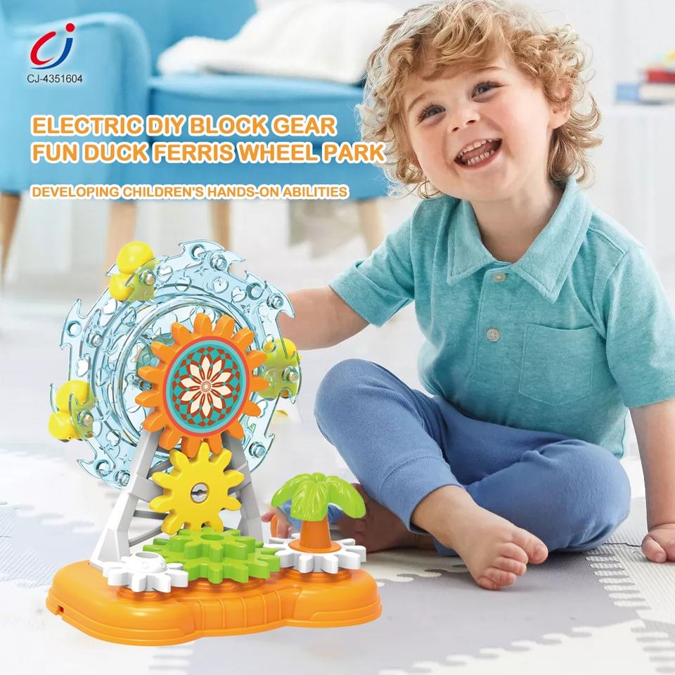 Chengji grande roue bloc de construction parc musique lumière canard piste enfants jouets éducatifs bricolage coloré engrenage électrique blocs de construction