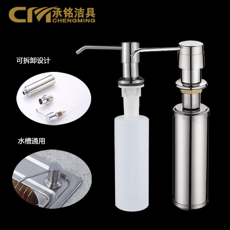 Distributeur de savon manuel Chengming 300 ml en acier inoxydable et plastique finition brossée, accessoire pour évier de cuisine