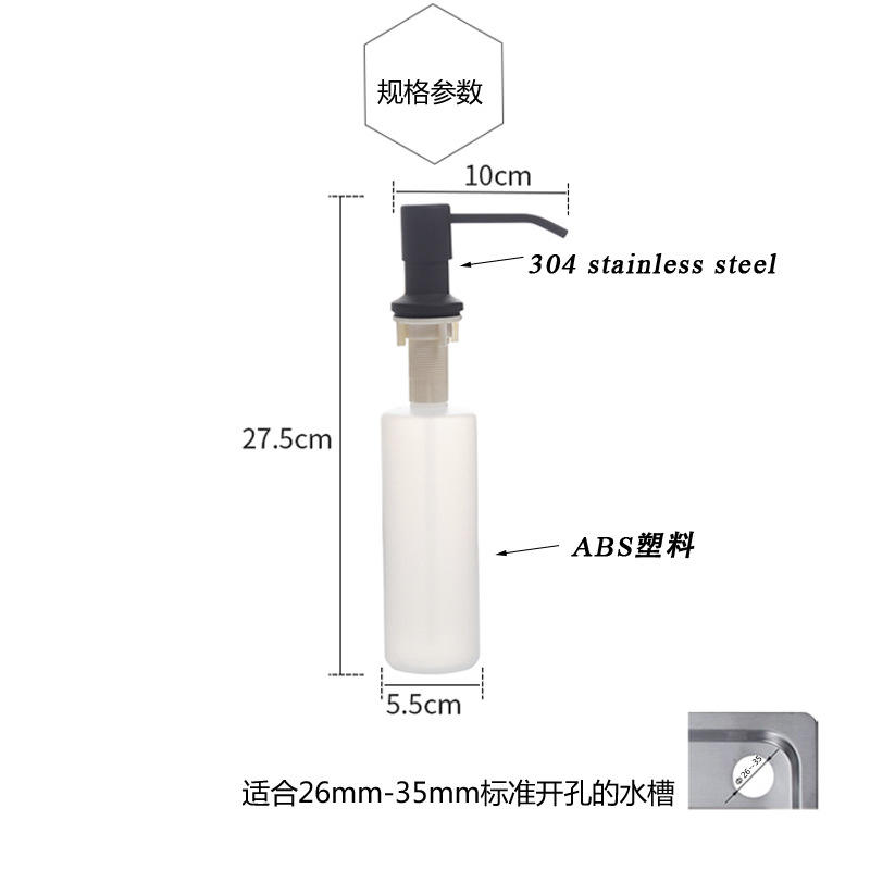 Distributeur de savon Chengming en acier inoxydable 304 avec bouteille en plastique, à pression manuelle, pour évier de cuisine