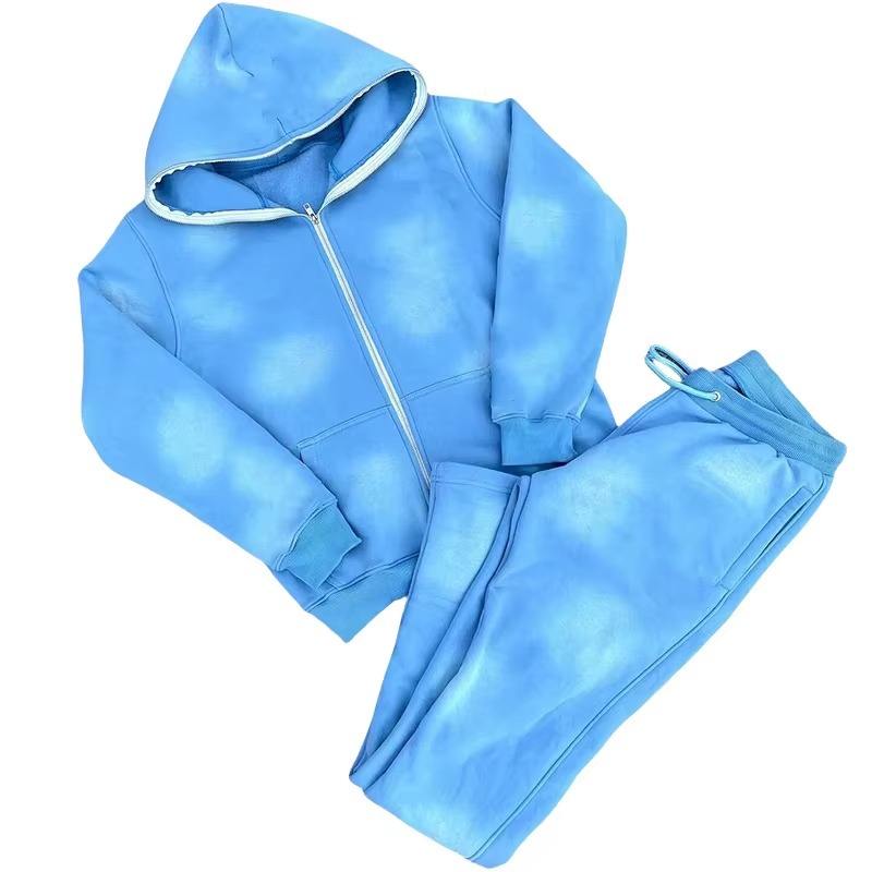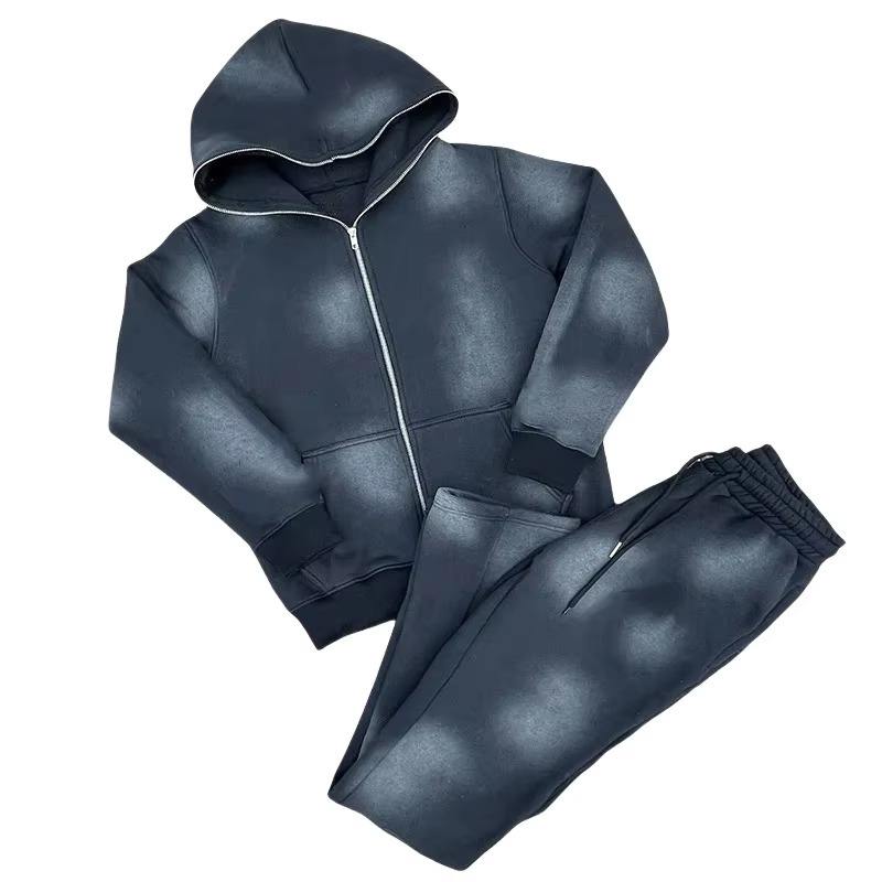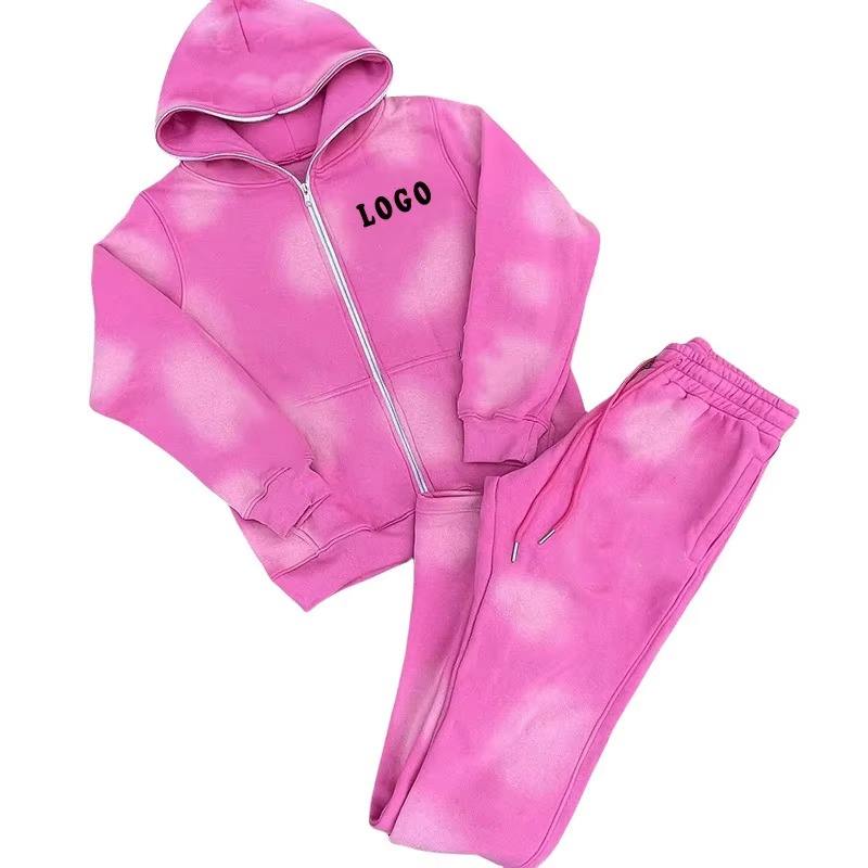 Chenille broderie 3D Logo visage complet fermeture éclair à capuche ensemble femmes survêtement coton soleil délavé unisexe survêtement