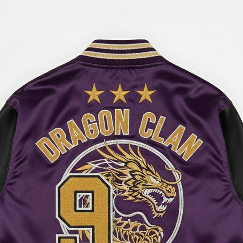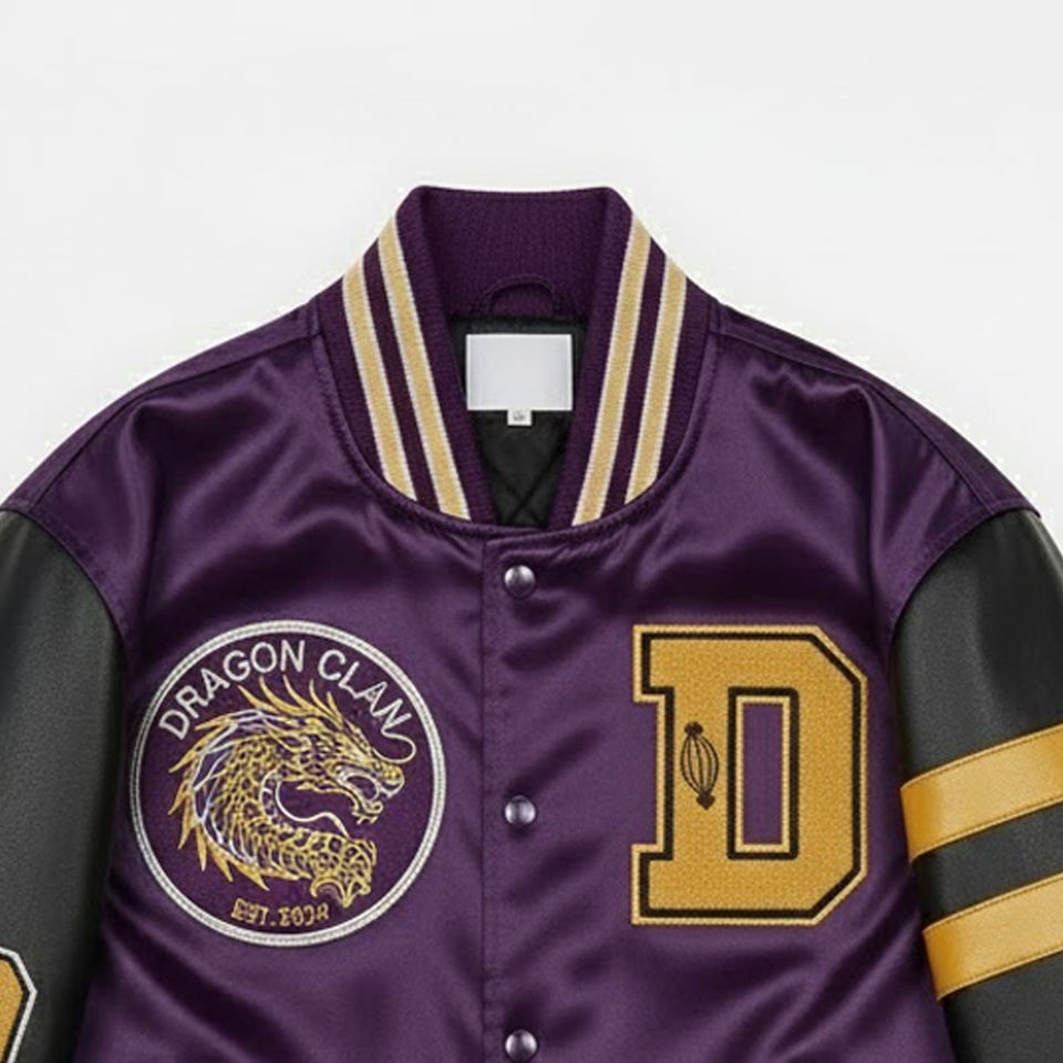 Veste universitaire en satin brodé chenille pour hommes