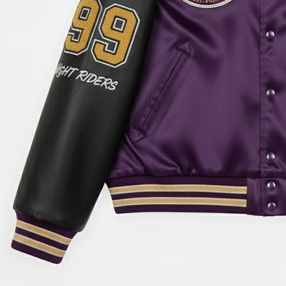 Nom du produit:Veste universitaire en satin brodé chenille pour hommes