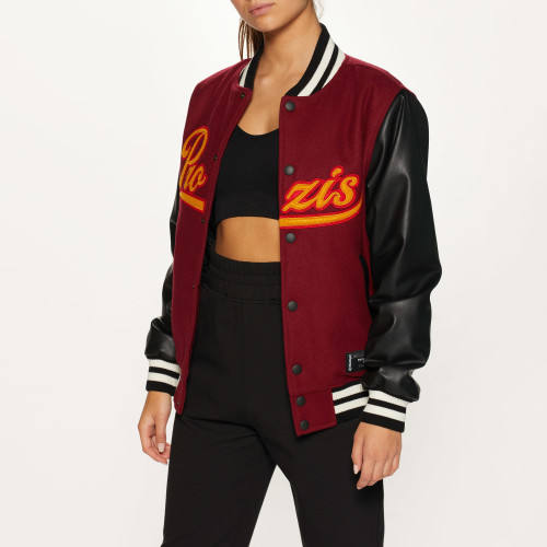 Vestes universitaires en chenille patchées pour femmes patchs brodés vestes courtes personnalisées propres vestes de conception de logo pour femmes