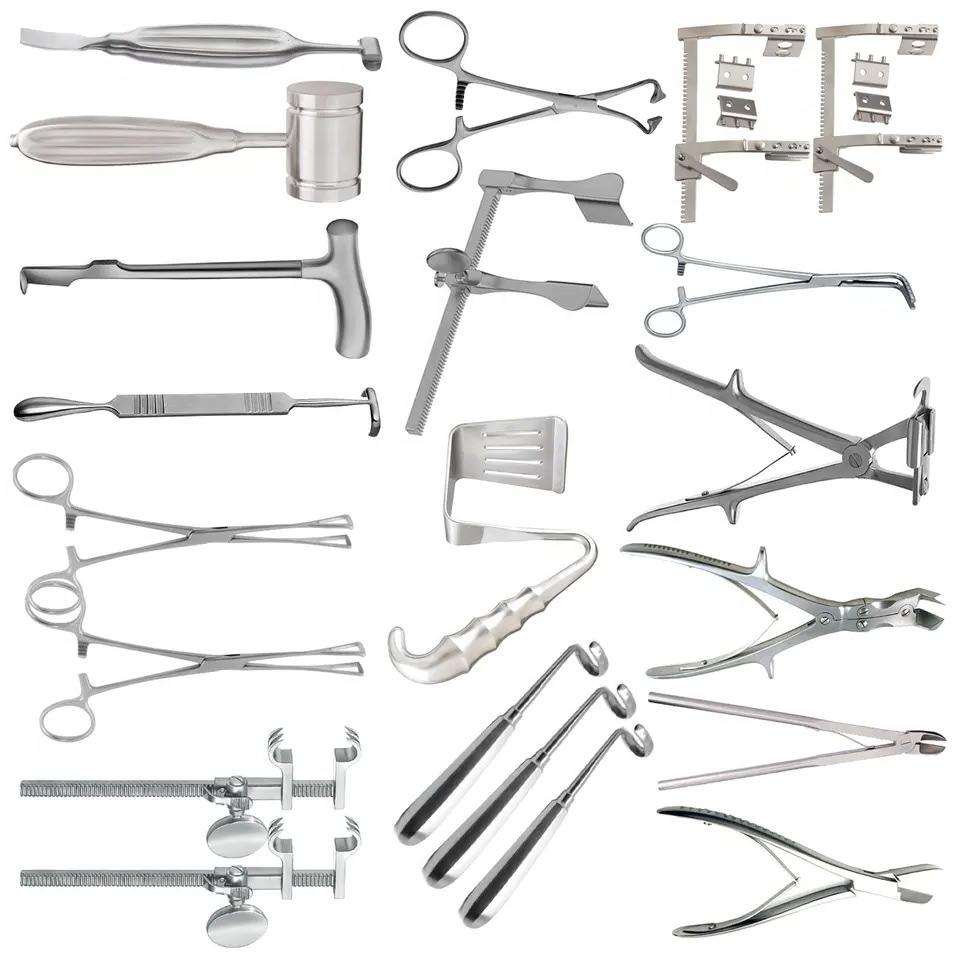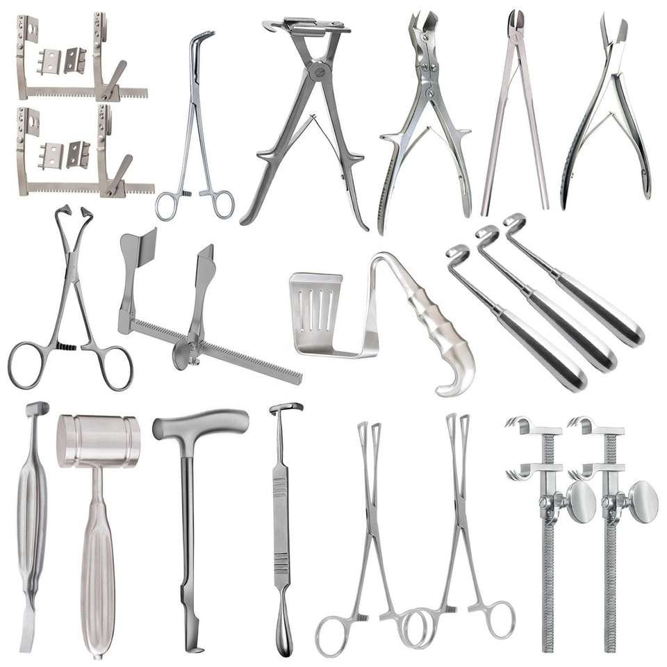 Ensemble d'instruments de poitrine de 21 instruments de chirurgie thoracique en acier et plastique réutilisables outils chirurgicaux de haute qualité