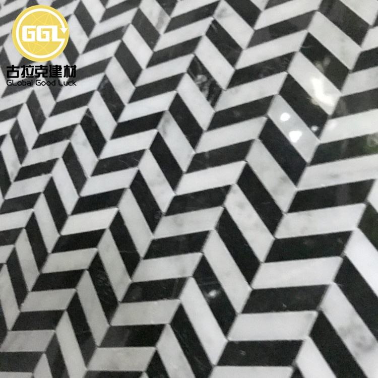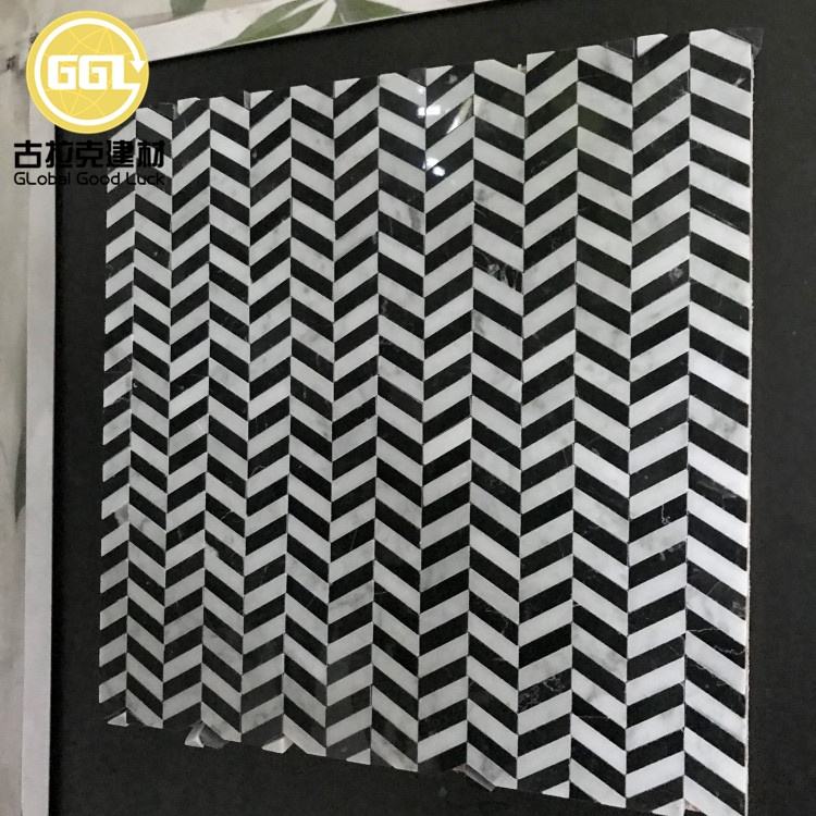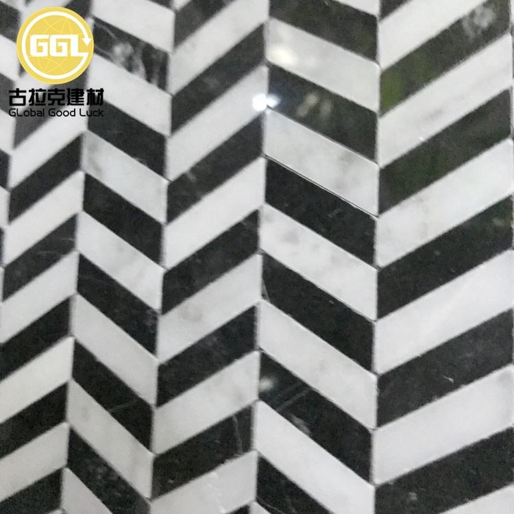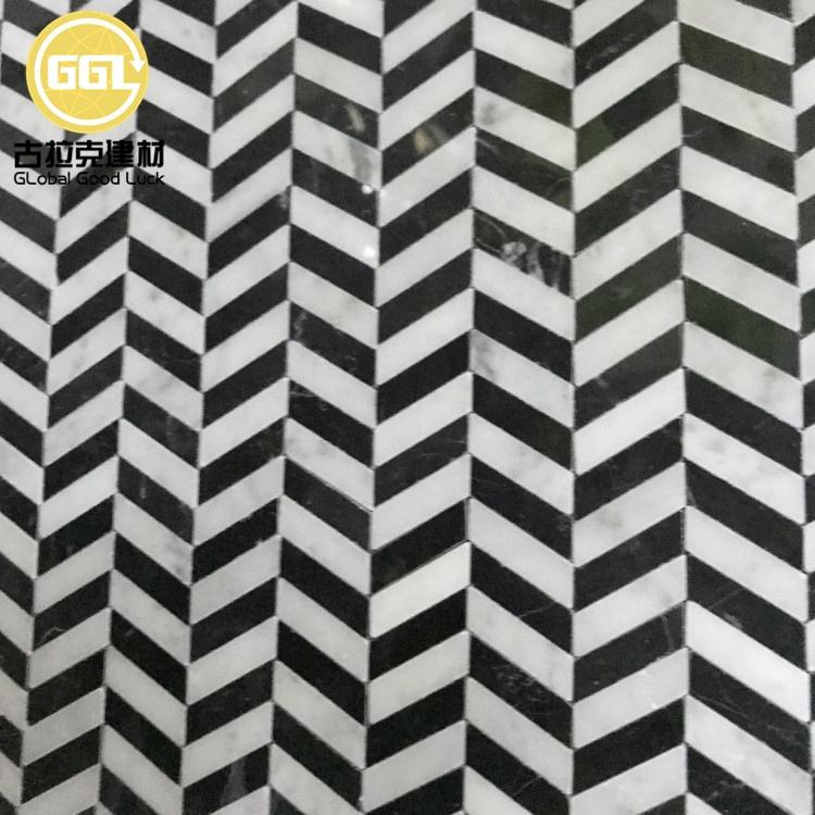 Nom du produit:Carrelage Chevron Zèbre Couleur Noir Mélange Blanc Marbre pour Sol et Rangement