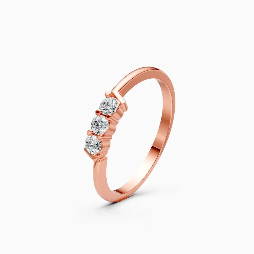 Bague chic à trois pierres en diamant de laboratoire de 0,20 ct en or jaune, blanc et rose 9 carats
