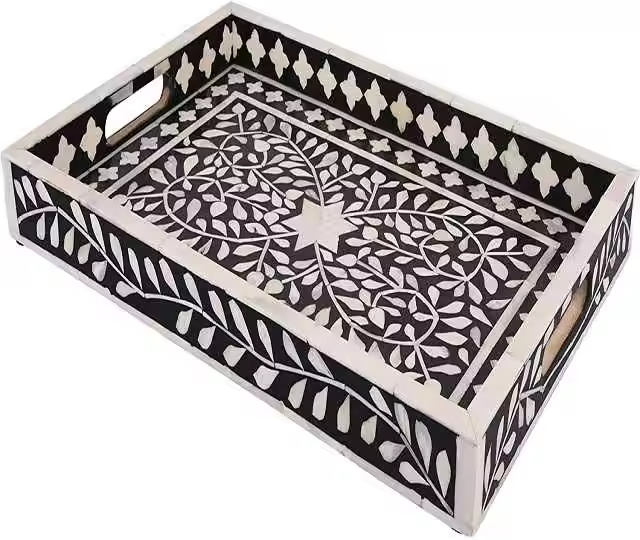 Plateau décoratif en incrustation d'os pour les fêtes de table basse de salle à manger et le plateau d'utilisation de table de mariage par l'artisanat de croissant