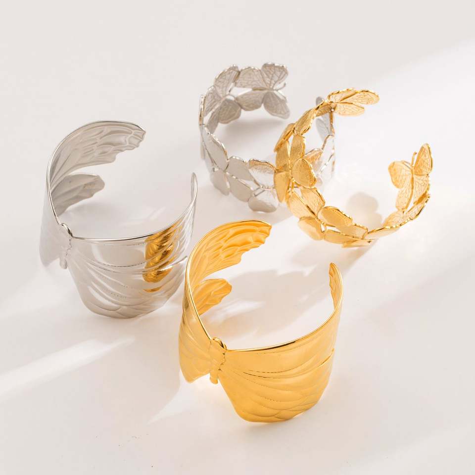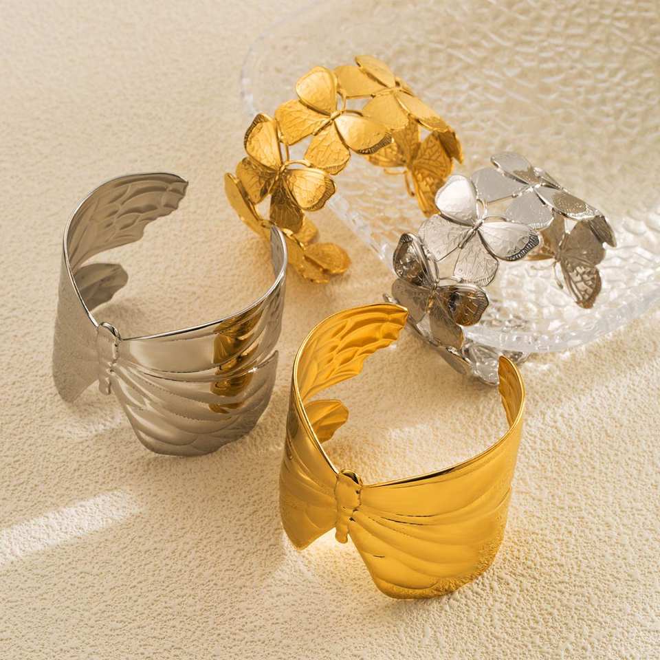 Chic Papillon En Acier Inoxydable Manchette Bracelets Bracelets Exagéré Plaqué Or Chunky Large Ouvert Bracelets Bijoux Étanches