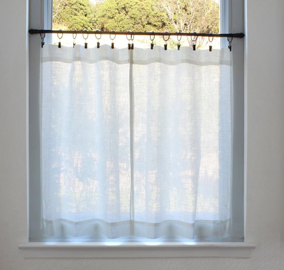 Chic Style Européen Café Rideaux Semi Sheer Beige Blanc 100% Rideaux En Lin Pour Salon