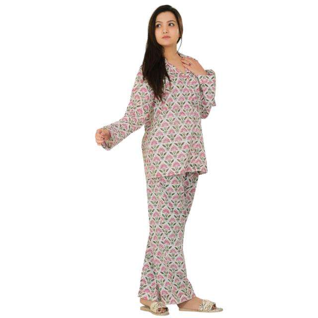 Chic Floral coton PJ ensemble pour femmes léger été Voile chemise et pantalon élégant vêtements de détente demoiselle d'honneur vêtements de nuit pour le printemps