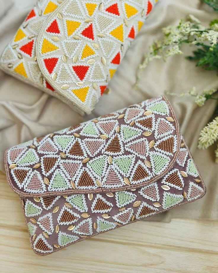 Porte-monnaie chic fait main avec broderie florale et perles, forme carrée, léger, options de couleur et de logo personnalisées