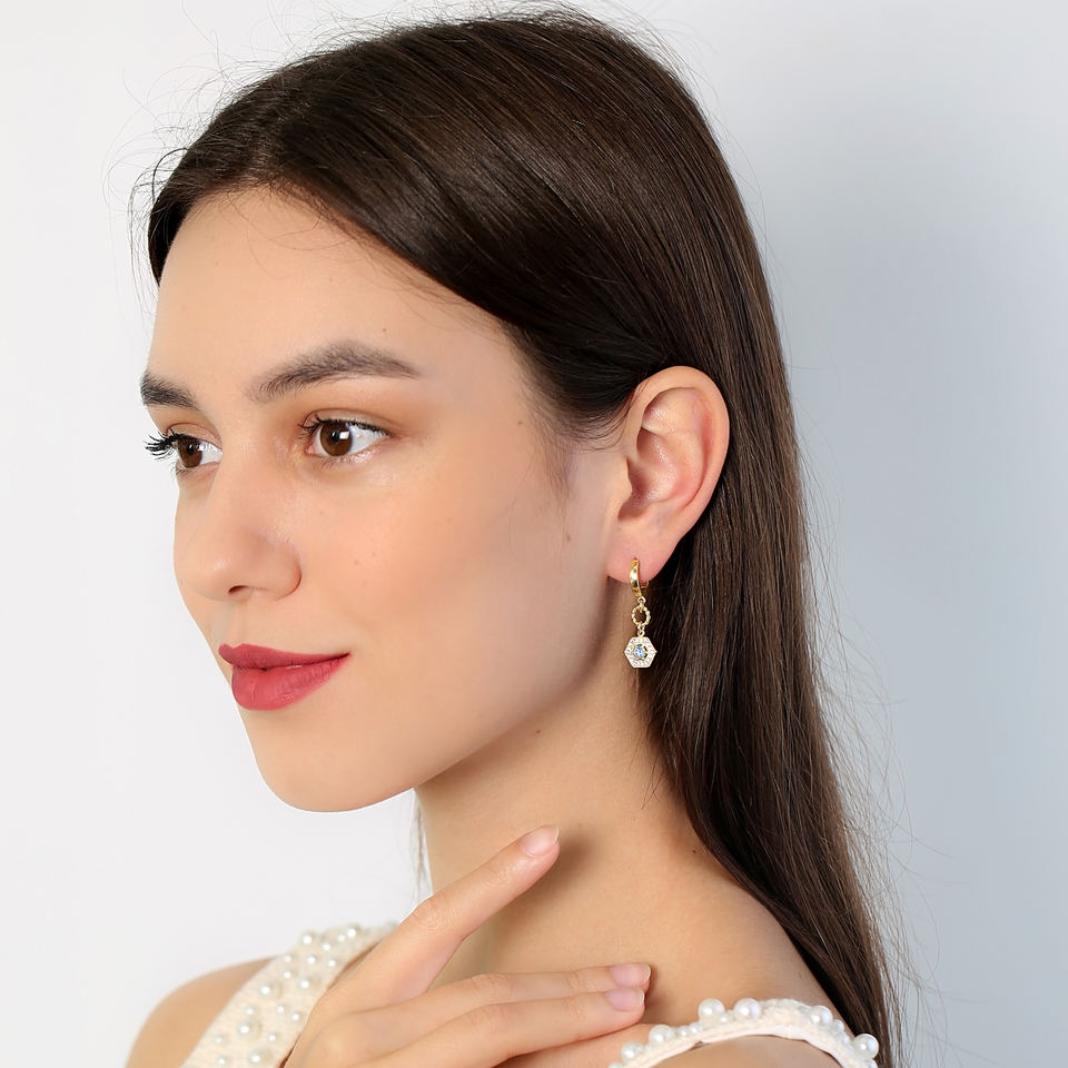 Boucles d'oreilles pendantes en pierre d'aigue-marine en forme d'hexagone Chic, bijoux en argent Sterling 925 turcs, vente en gros