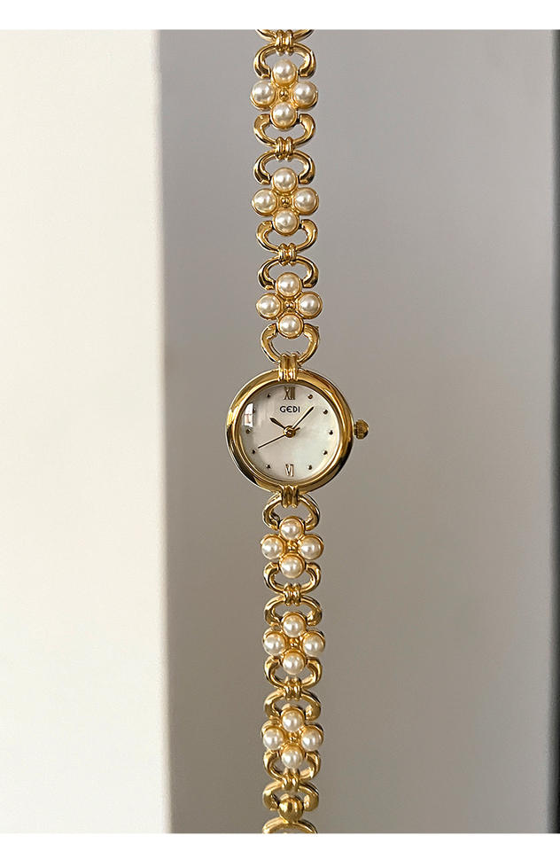 Chic Pearl Bracelet Ladies Watch Oriental Inspired Sparkling Quartz Timepiece