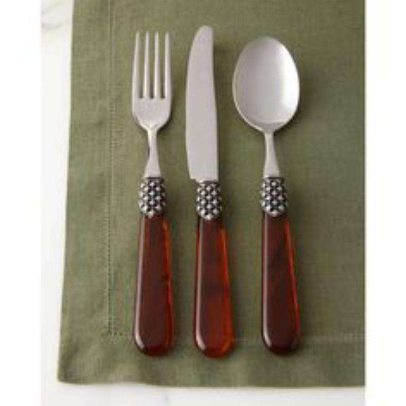 Ensemble de couverts à manche en résine chic avec poignées en résine légères et bords de précision assurant une fiabilité à long terme