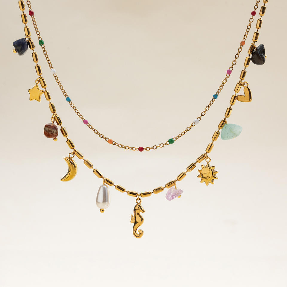 Collier pendentif chic en forme de cœur et de croix en acier inoxydable plaqué or 18 carats avec perles et diamants blancs, idéal pour un usage quotidien