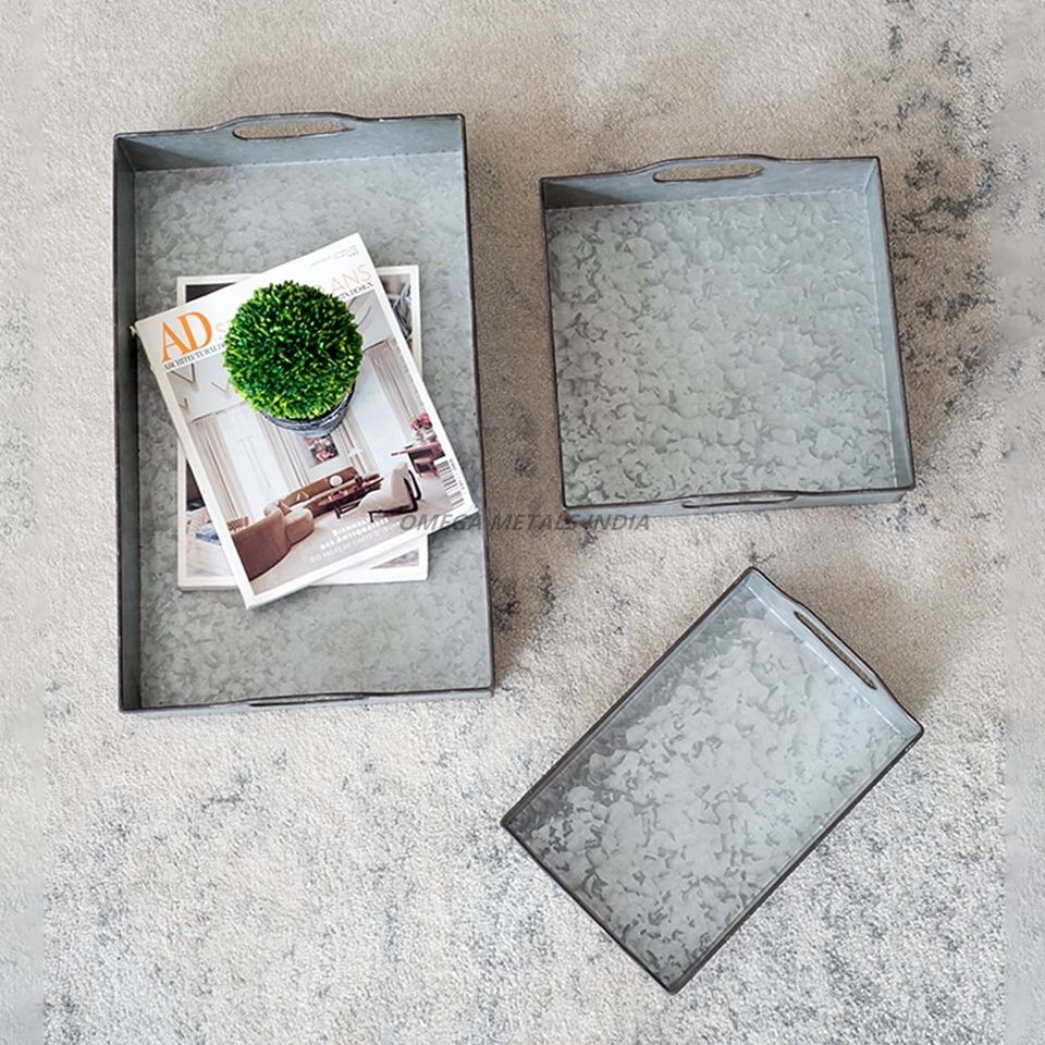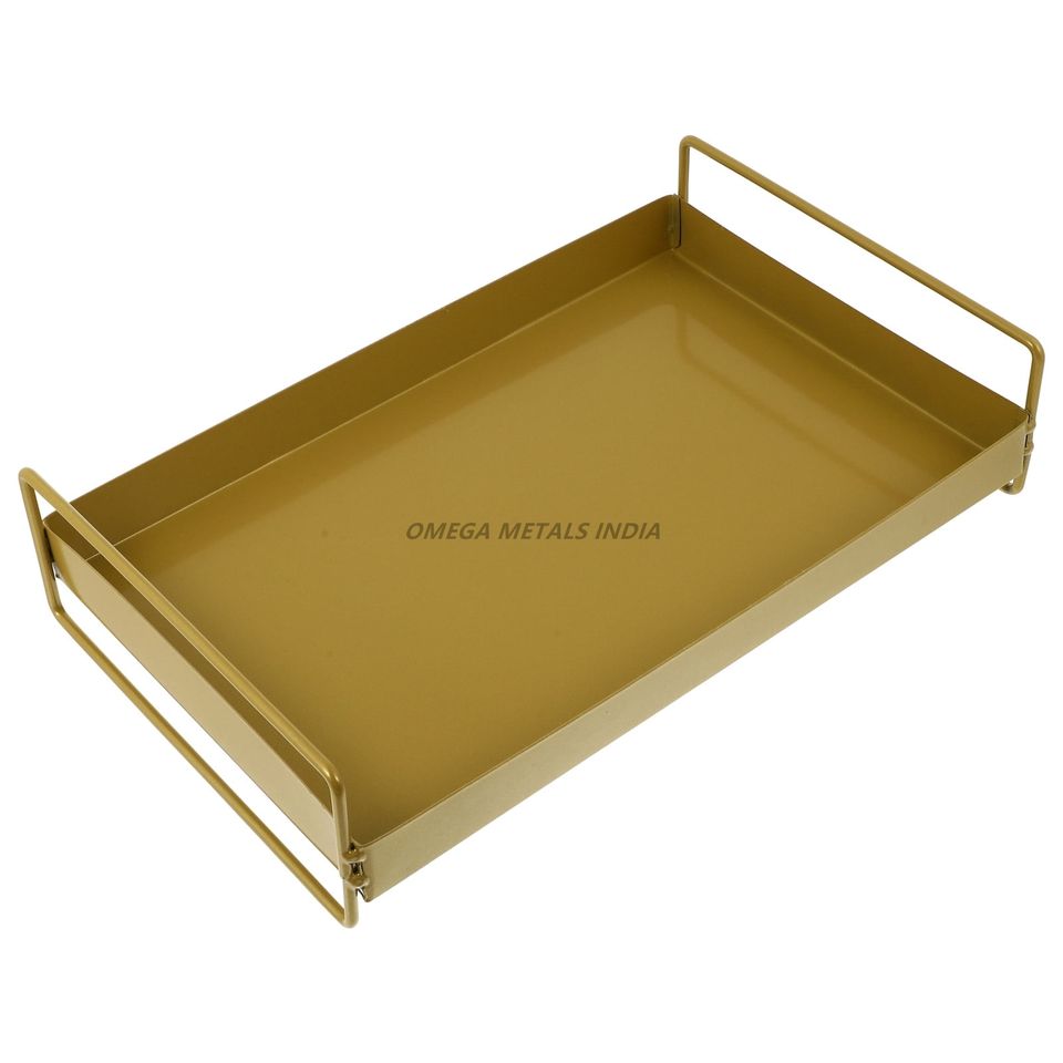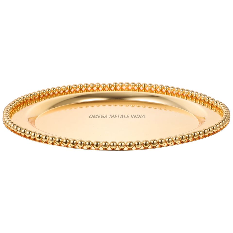 Ensemble chic de deux plateaux de service carrés en or avec bordure perlée, parfait pour un service élégant et un affichage décoratif