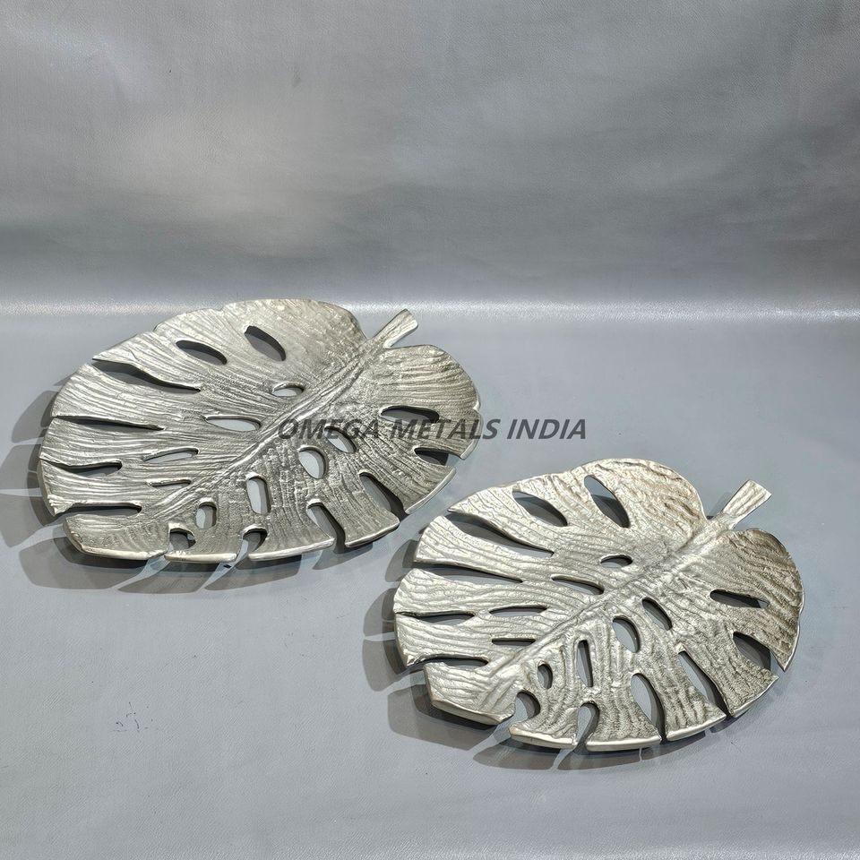 Plateau feuille d'argent chic avec détails texturés 2 pièces parfait pour servir des friandises et élever votre décoration intérieure esthétique