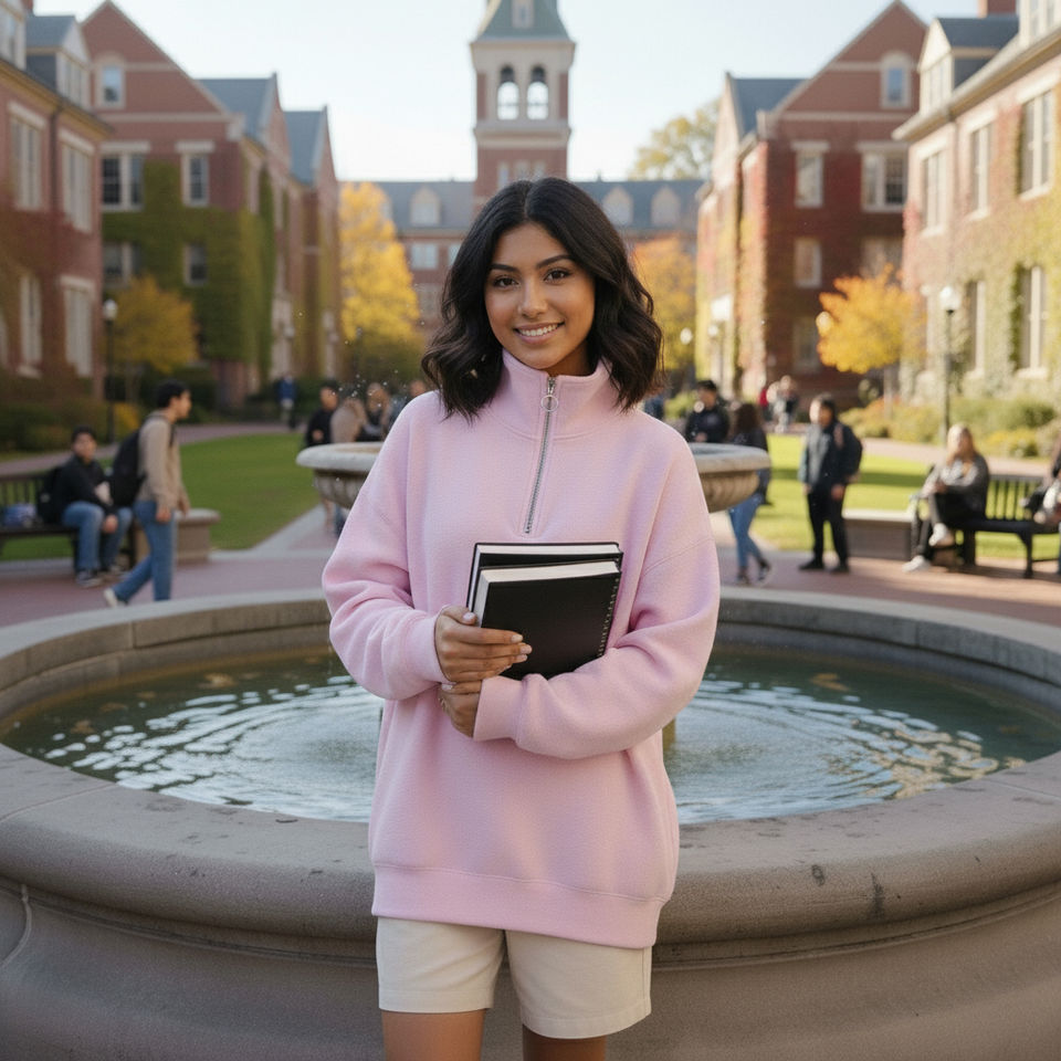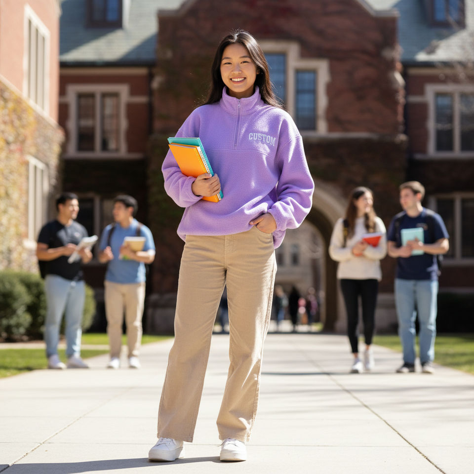 Haut chic et doux pour femme, coupe oversize longue, imprimé sur le devant, col montant, en tissu respirant à séchage rapide et silhouette décontractée et douce.