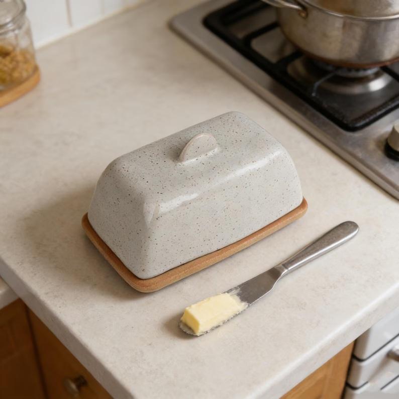 Plat de service chic et élégant pour beurre, avec couvercle, finition émaillée lisse, accessoire de table raffiné pour la cuisine