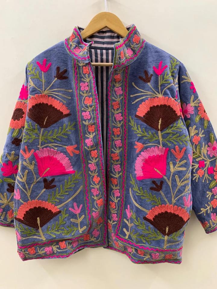 Velvet Fabric Suzani Embroidery Jacket
