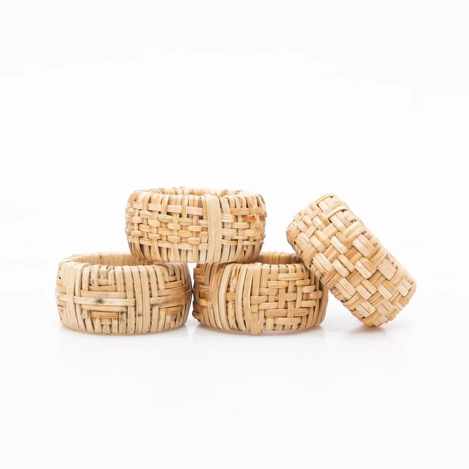 Rond de serviette en rotin tissé chic avec un design minimaliste simple idéal pour le style de table à manger quotidien