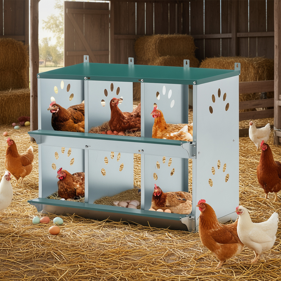 Chicken Nesting Box 6-Room Galvanized Steel Easy To Assemble Durable Metal Housing For Hens Poultry Farm Use