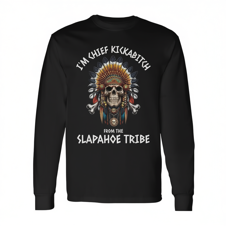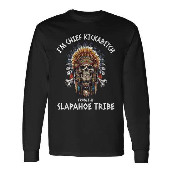 T-shirt à manches longues pour adultes, humoristique, Chief Kickabitch Slapahoe Tribe