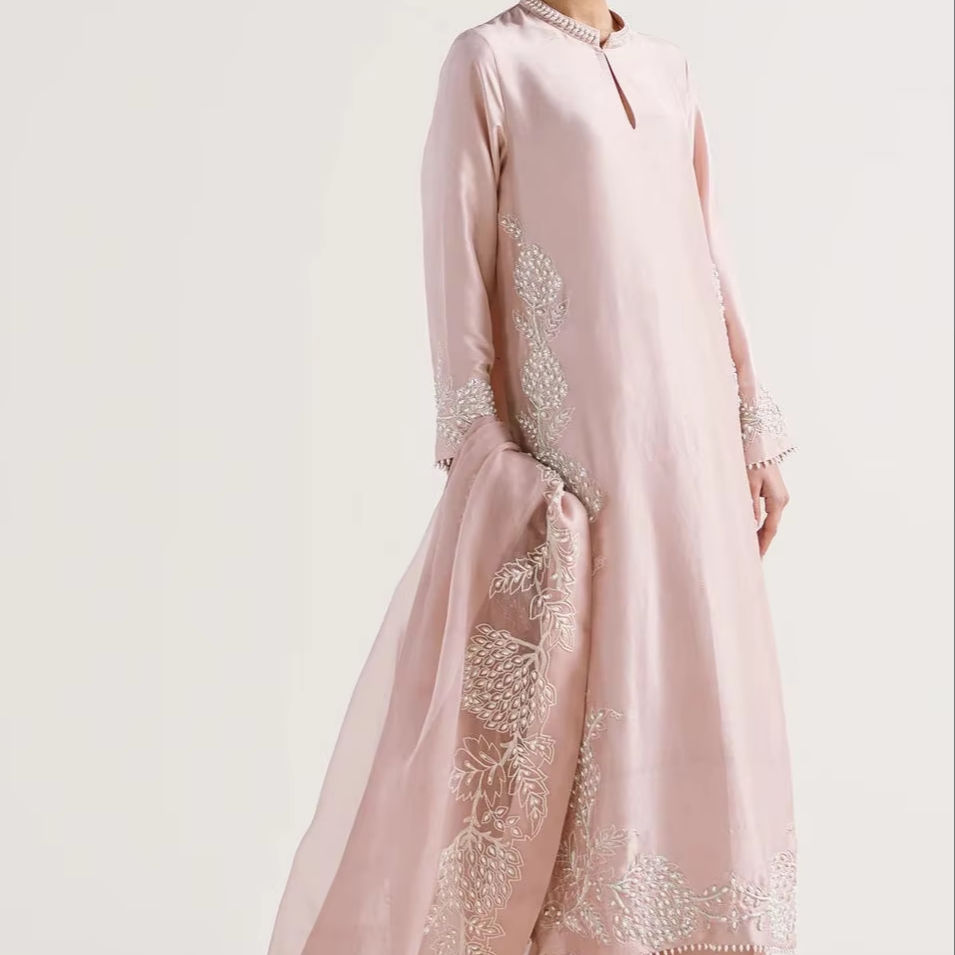 Robe longue Anarkali en mousseline brodée, manches longues, design maxi, ornements lourds, protection solaire pour femmes pakistanaises