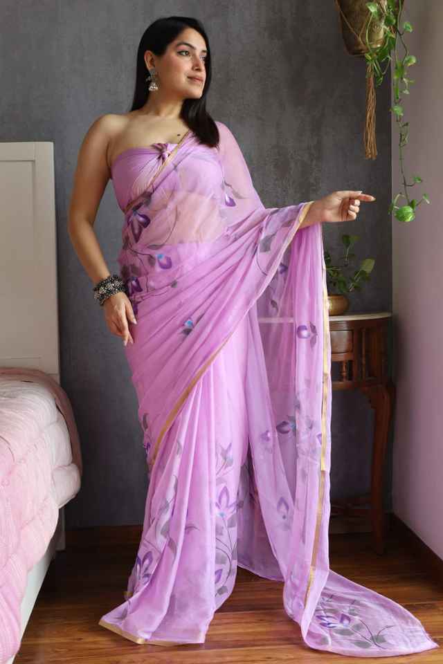 Saree peint à la main en mousseline de soie avec chemisier de course vêtements de fête Pooja Diwali fonction de mariage Sadi Sari inde vente en gros 2025 Festival