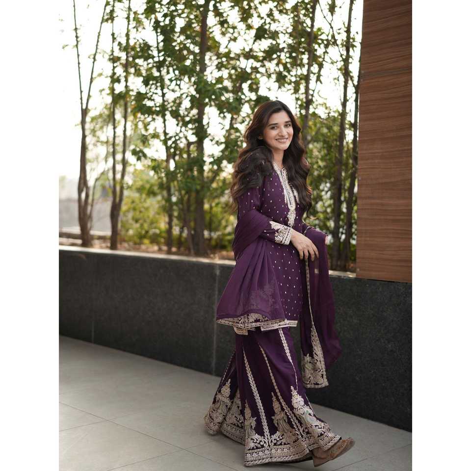 Ensemble de tenue de soirée en mousseline de soie avec broderie et travail de paillettes, tenue de mariage élégante