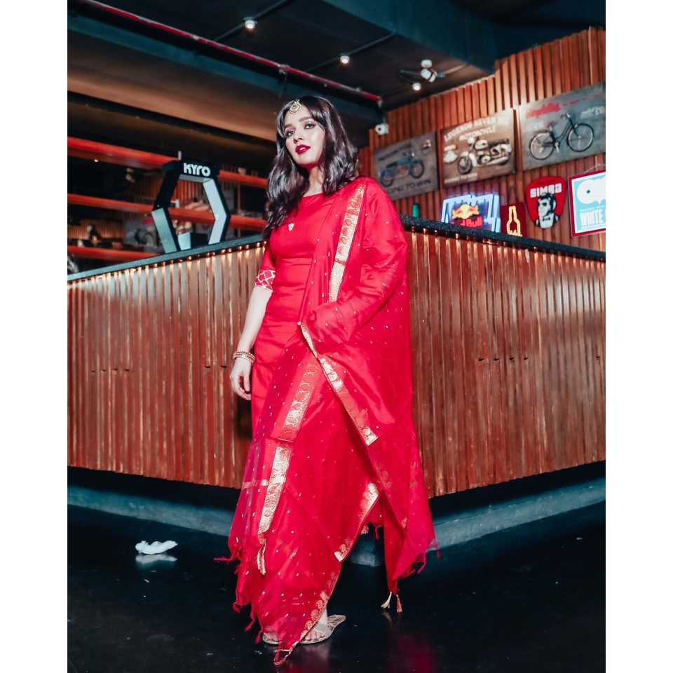 Ensemble de costume pour femme en mousseline de rayonne rouge taille XS, lumineux et élégant