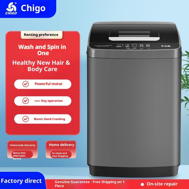 Lave-linge séchant intégré Chigo, électrique, en acier inoxydable, entièrement automatique, grande capacité de 10 kg, pour logement locatif, petit modèle