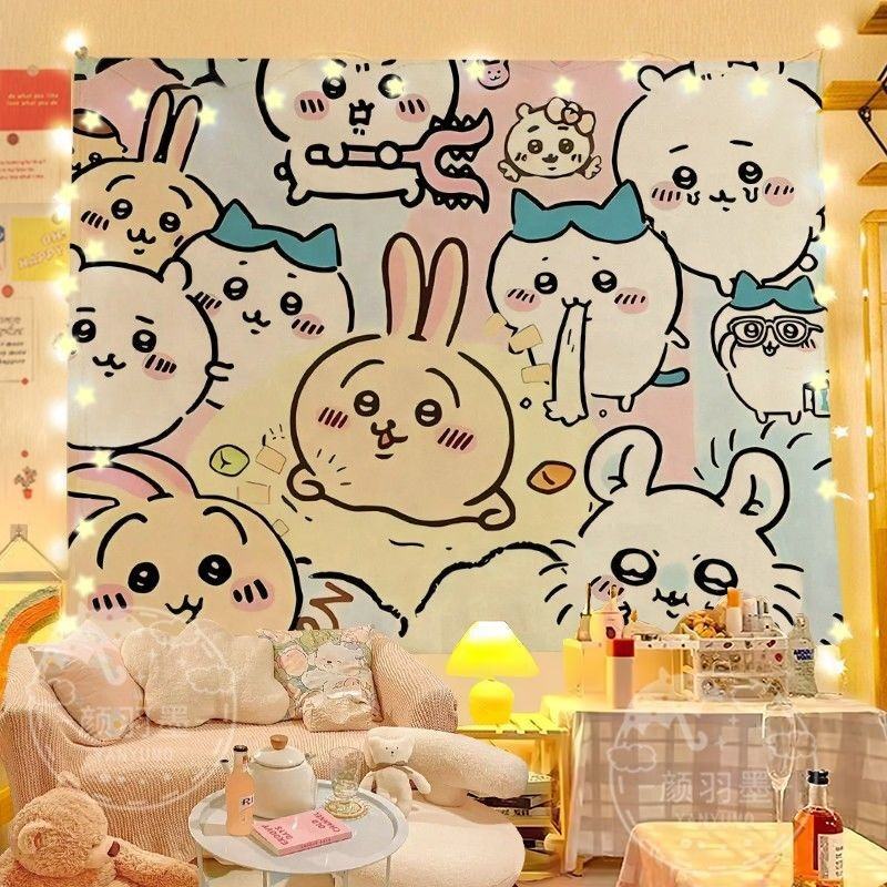 Tissu décoratif suspendu Chiikawa, motif dessin animé mignon, toile de fond Chiikawa, décoration de chambre d'étudiant, chambre à coucher, chevet