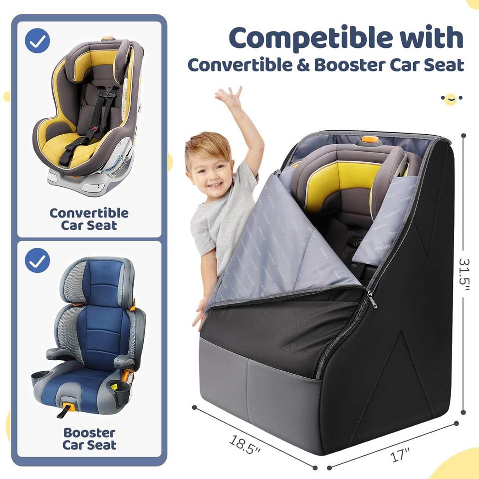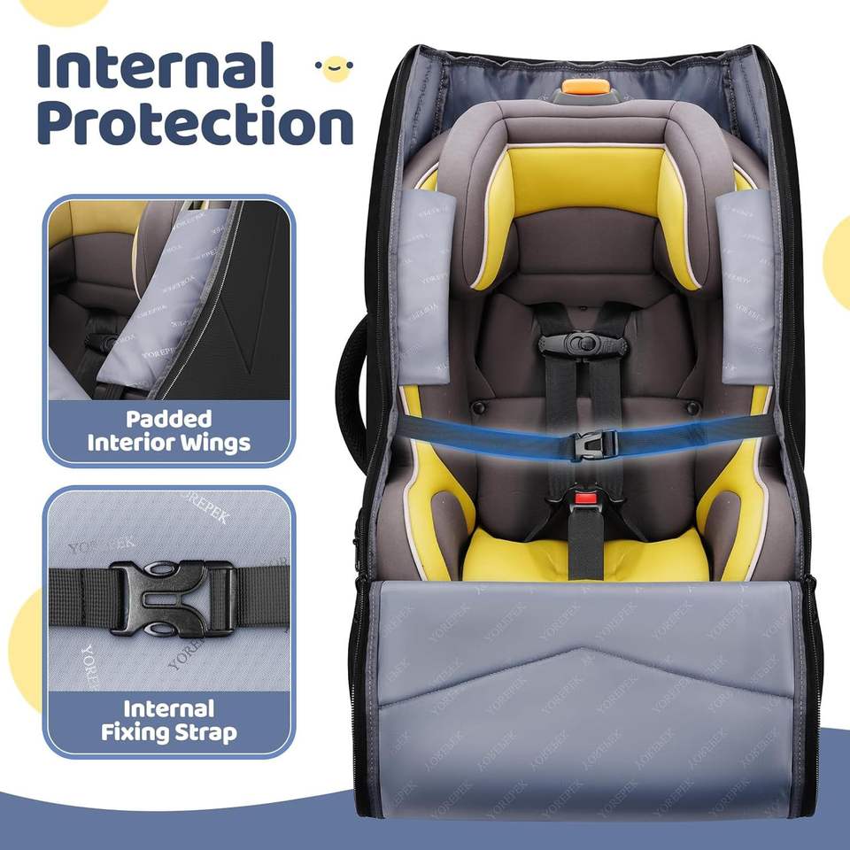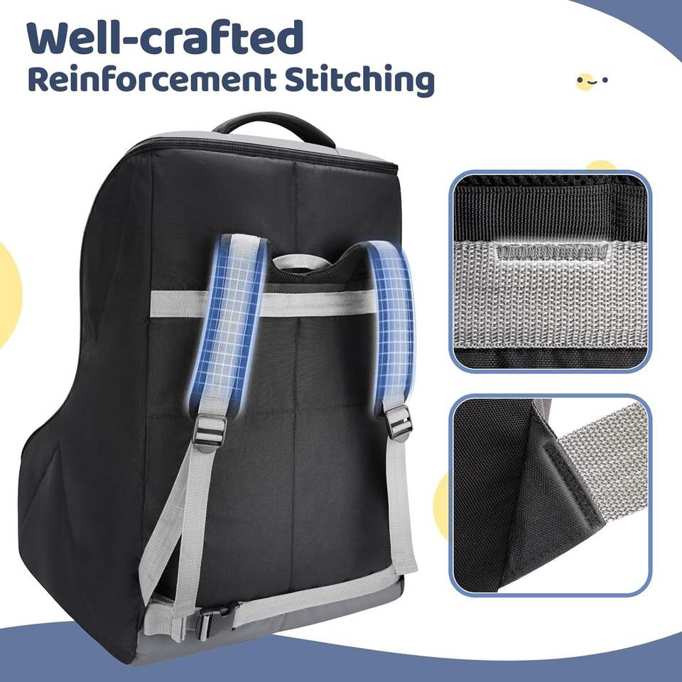Sac à dos de rangement pour siège d'enfant, sac de voyage rembourré noir résistant à l'usure pour le transport du siège auto de bébé