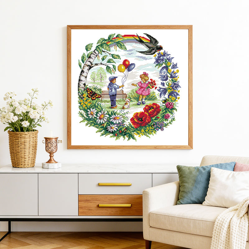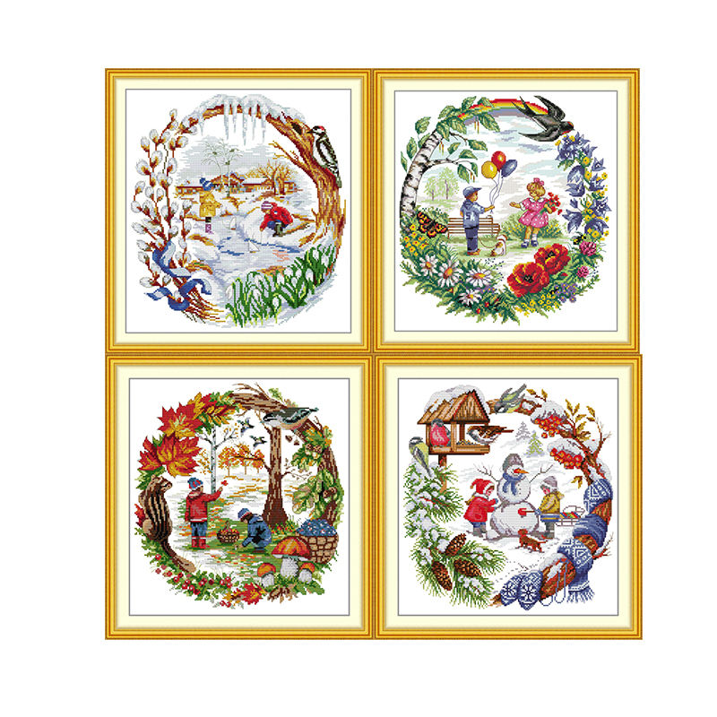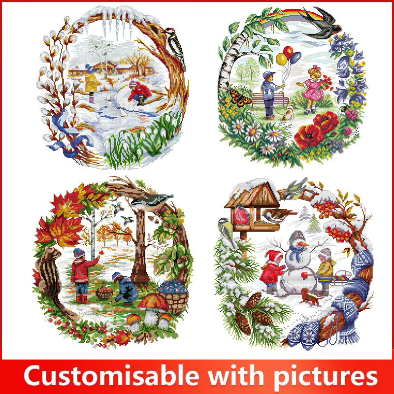 Kit de Broderie Point de Croix Série Enfance Motif HD, Tissu Aida 16/14/11CT Pré-imprimé ou à compter, Ensemble d'Artisanat Artistique, Toile à Broder