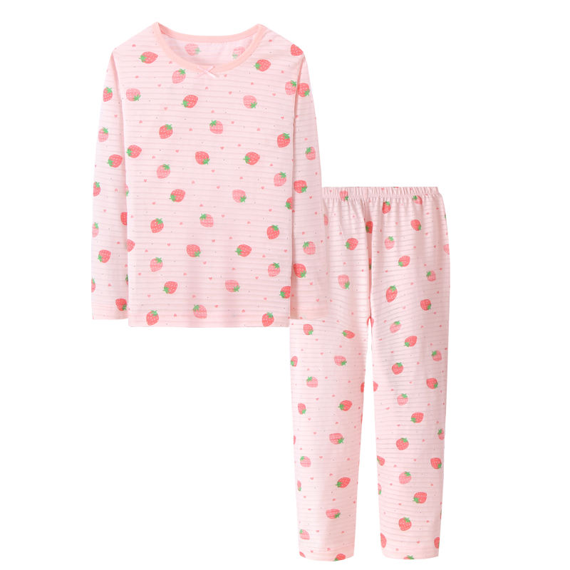 Pyjamas pour enfants 100% coton, ensemble 2 pièces, imprimé fraises, vêtements de nuit pour filles, pyjamas à manches longues pour enfants