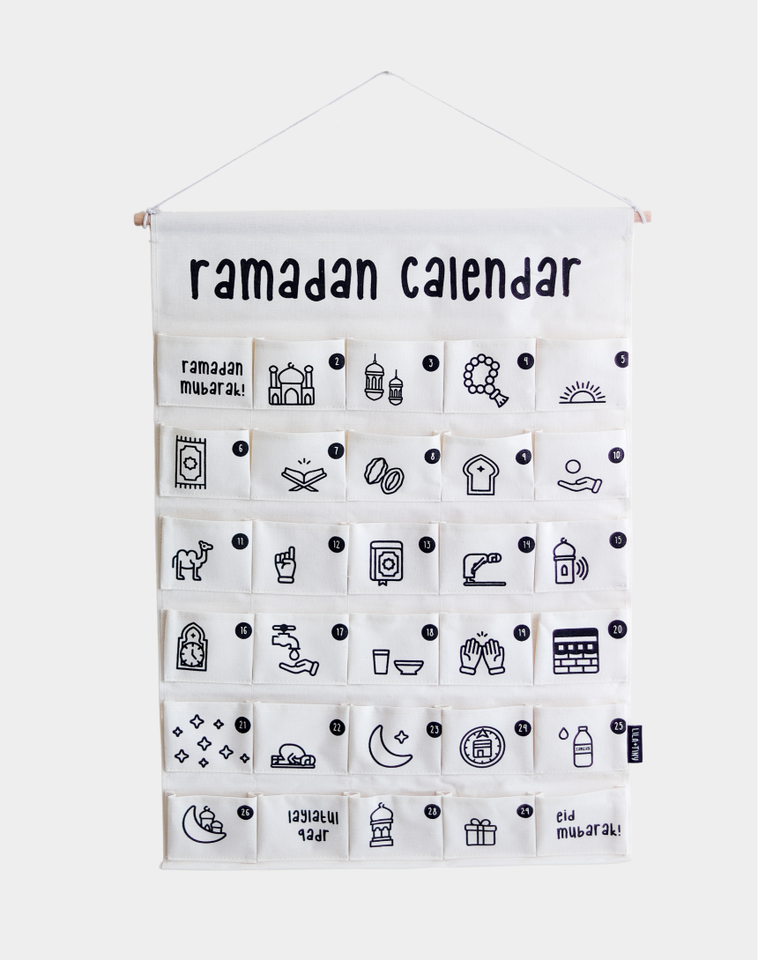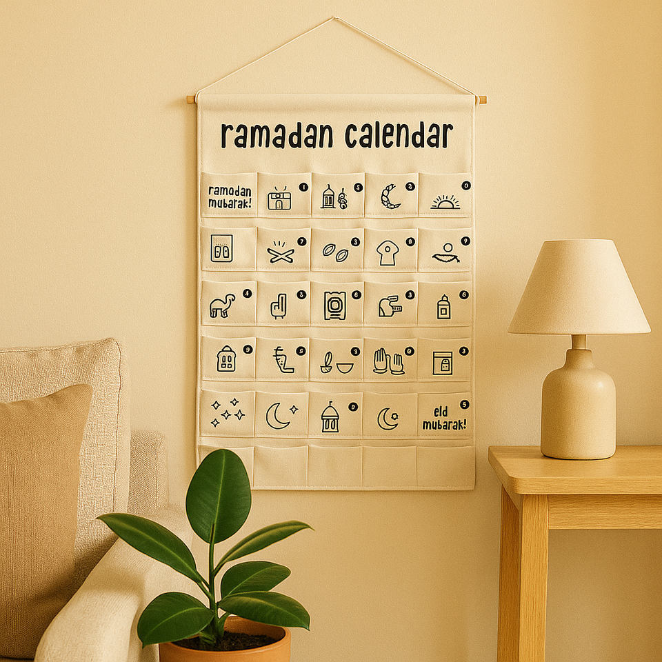 Calendrier de l'Avent en tissu personnalisé pour enfants, grand format, pour l'Aïd Moubarak, réutilisable, 30 pochettes, à remplir avec une tige de montage