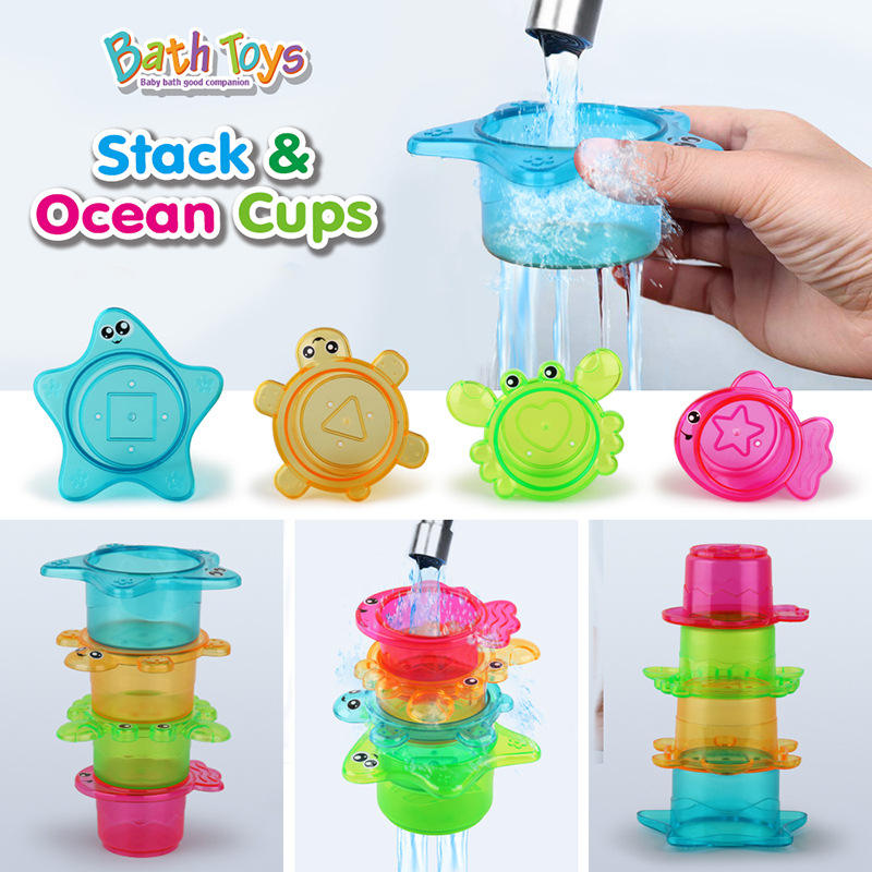 Enfants développement éducation piscine jeux de pêche avec empilage tasse filet liquidation jeu pêche bain jouets ensemble