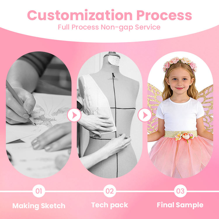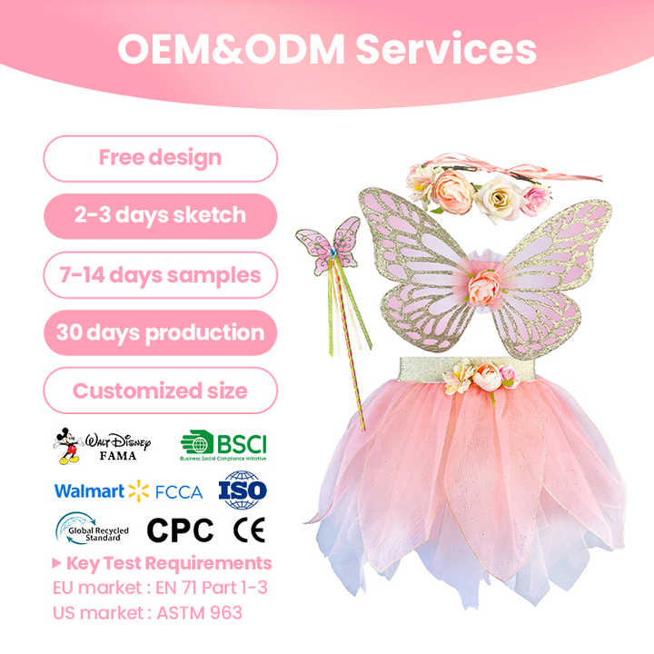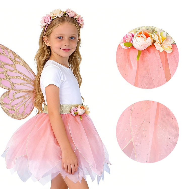 Ensemble de robe de fée pour enfants, jupe tutu rose, costume d'aile de papillon, couronne de fleurs, baguette magique, spectacle sur scène pour filles, 100% polyester