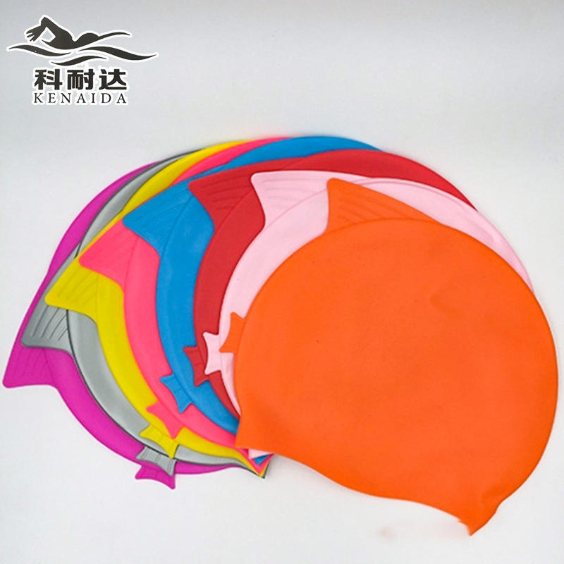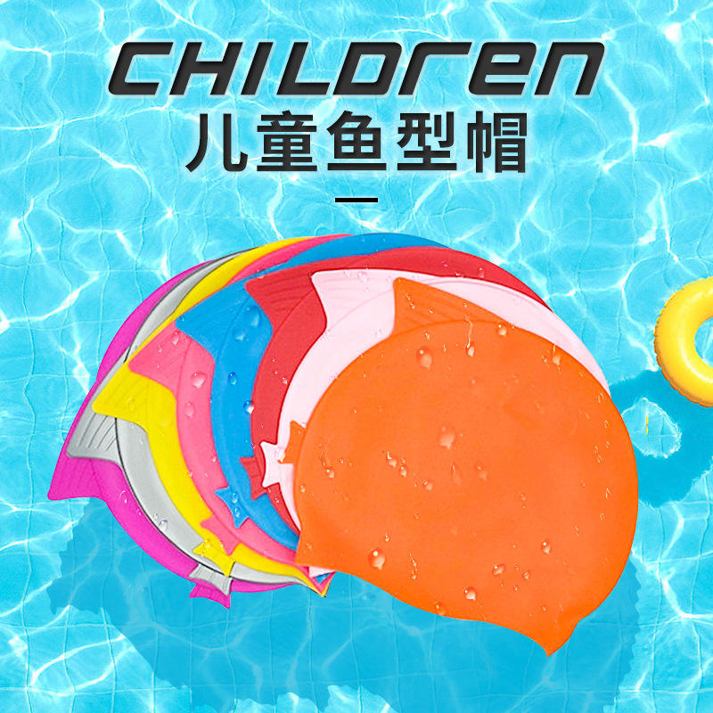 Bonnet de bain en forme de poisson pour enfants, protection des oreilles en silicone de couleur unie, pour utilisation en piscine