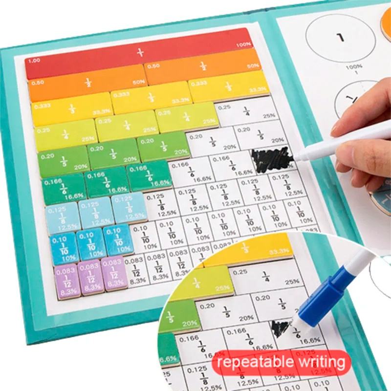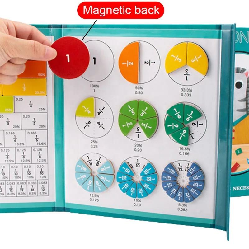 Enfants fraction apprentissage mathématiques jouets fraction en bois puzzle magnétique livre ensemble aides pédagogiques apprentissage arithmétique jouets éducatifs