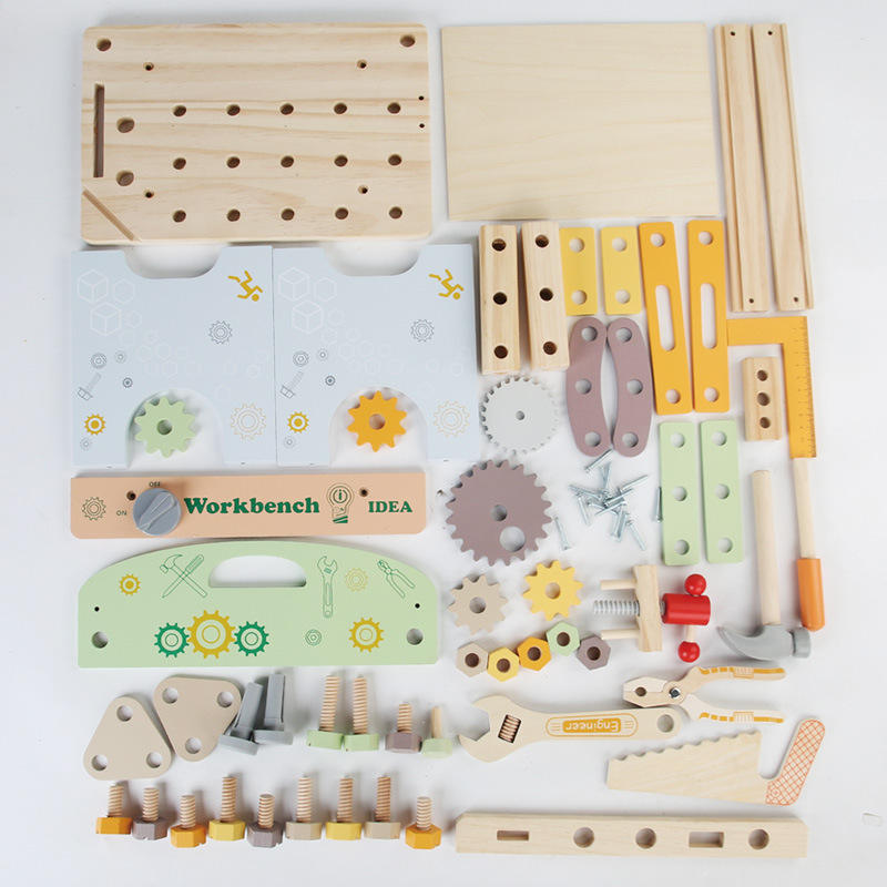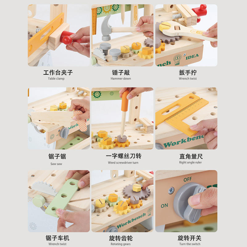 Children Role Play Toy Simulation Wooden Workbench Screws Nuts Wooden Tools Toy Fine Motor Skill Training Kids Educational Toys