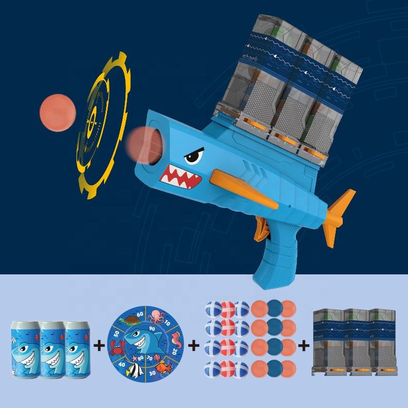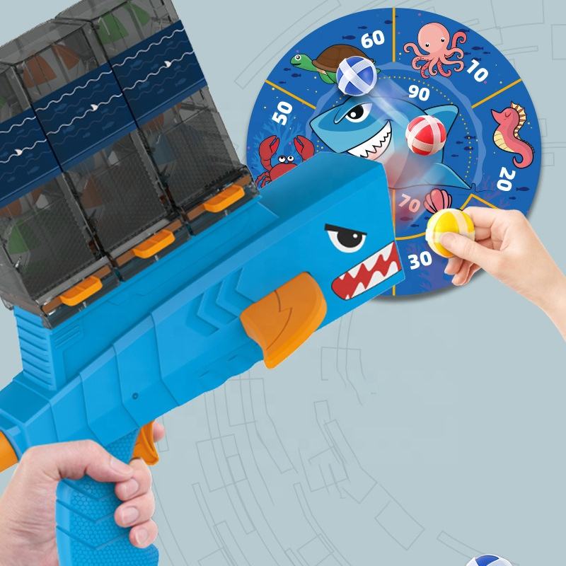 Pistolet à catapulte pour enfants, puzzle interactif parent-enfant, jouet requin, pistolet jouet ABS avec boule collante en tissu et 3 cartouches