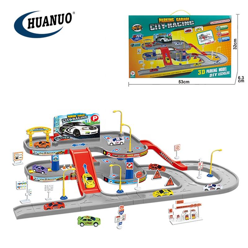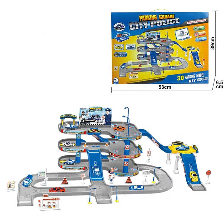 Description:City rescue 3 floor track DIY parking garage toy for children